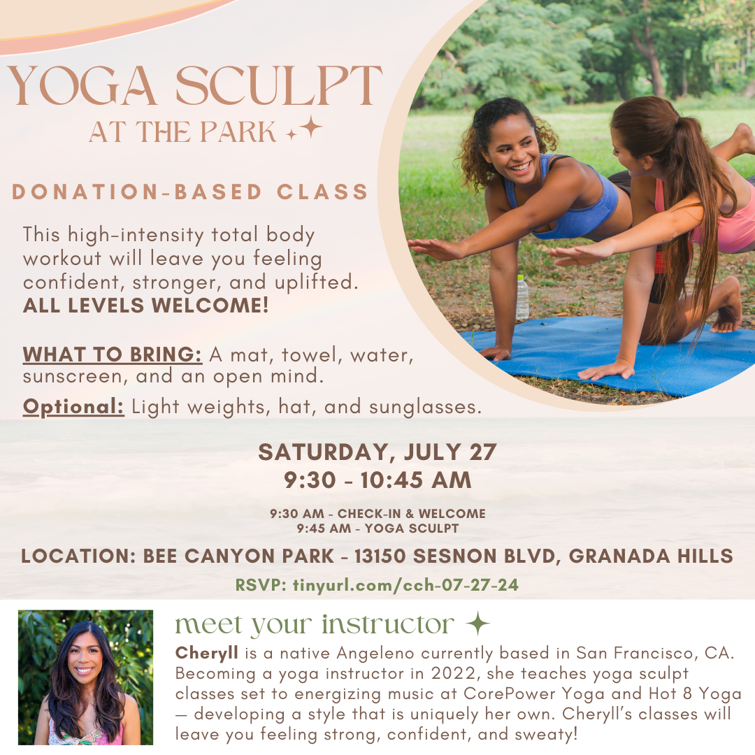 Yoga Sculpt Donation-Based Class: you can pay whatever you’re willing to contribute before or after class (Cash, Venmo, or Zelle). This body weight yoga sculpt class will incorporate use of a resistance band, which will be provided! This high-intensity total body workout will leave you feeling confident, stronger, and uplifted.